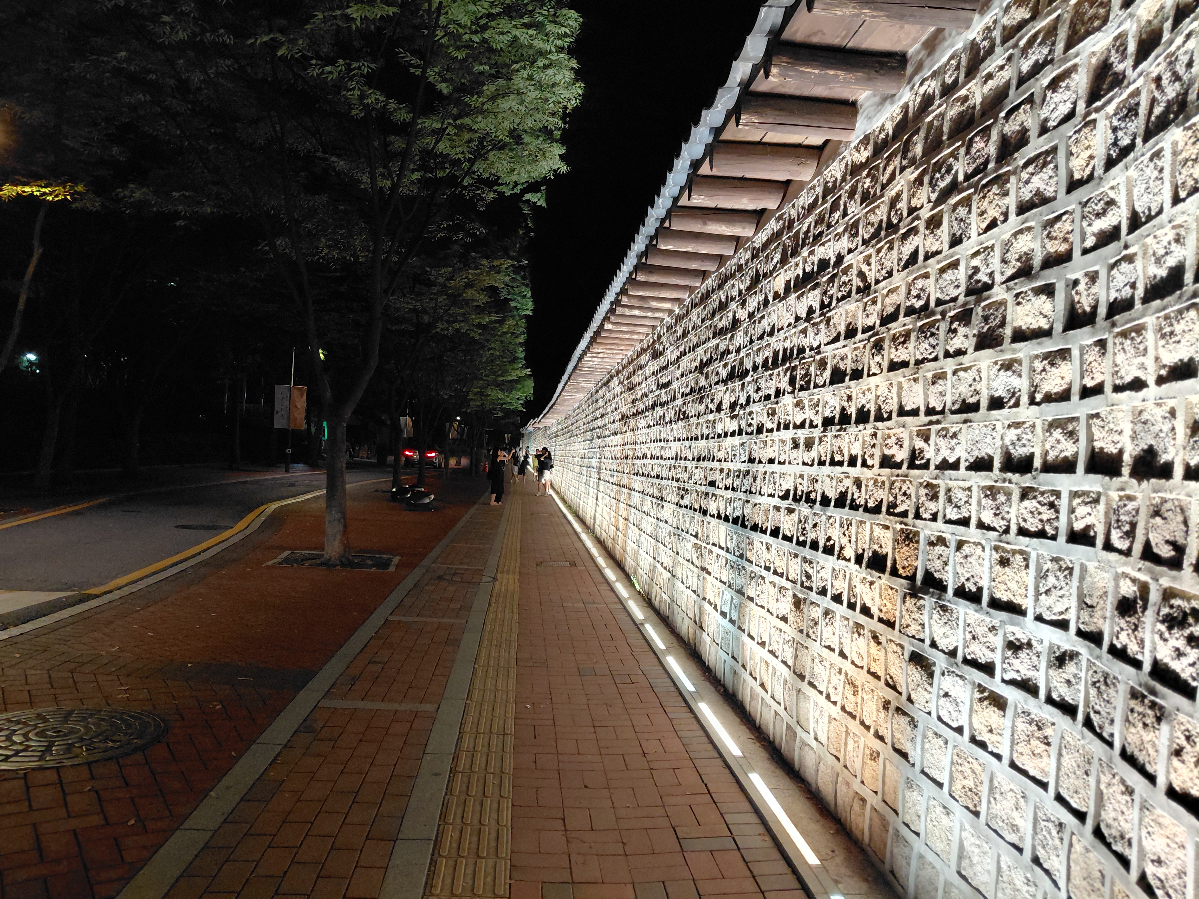 담을 따라 길게 이어진 길, 빛이 있어 고즈넉하고 맘이 평안해지는 거 같습니다.