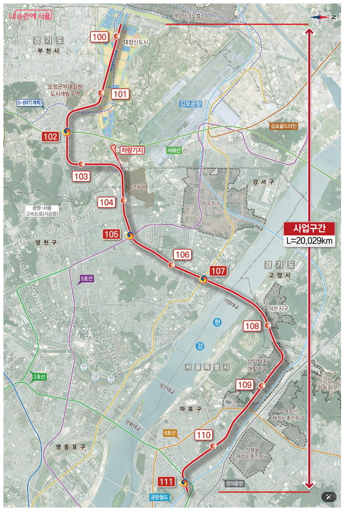 원종(서해선), 화곡(5호선), 가양(9호선), 상암, 홍대입구(2호선·경의중앙선·공항철도) 등 주요 노선과 맞물린다.